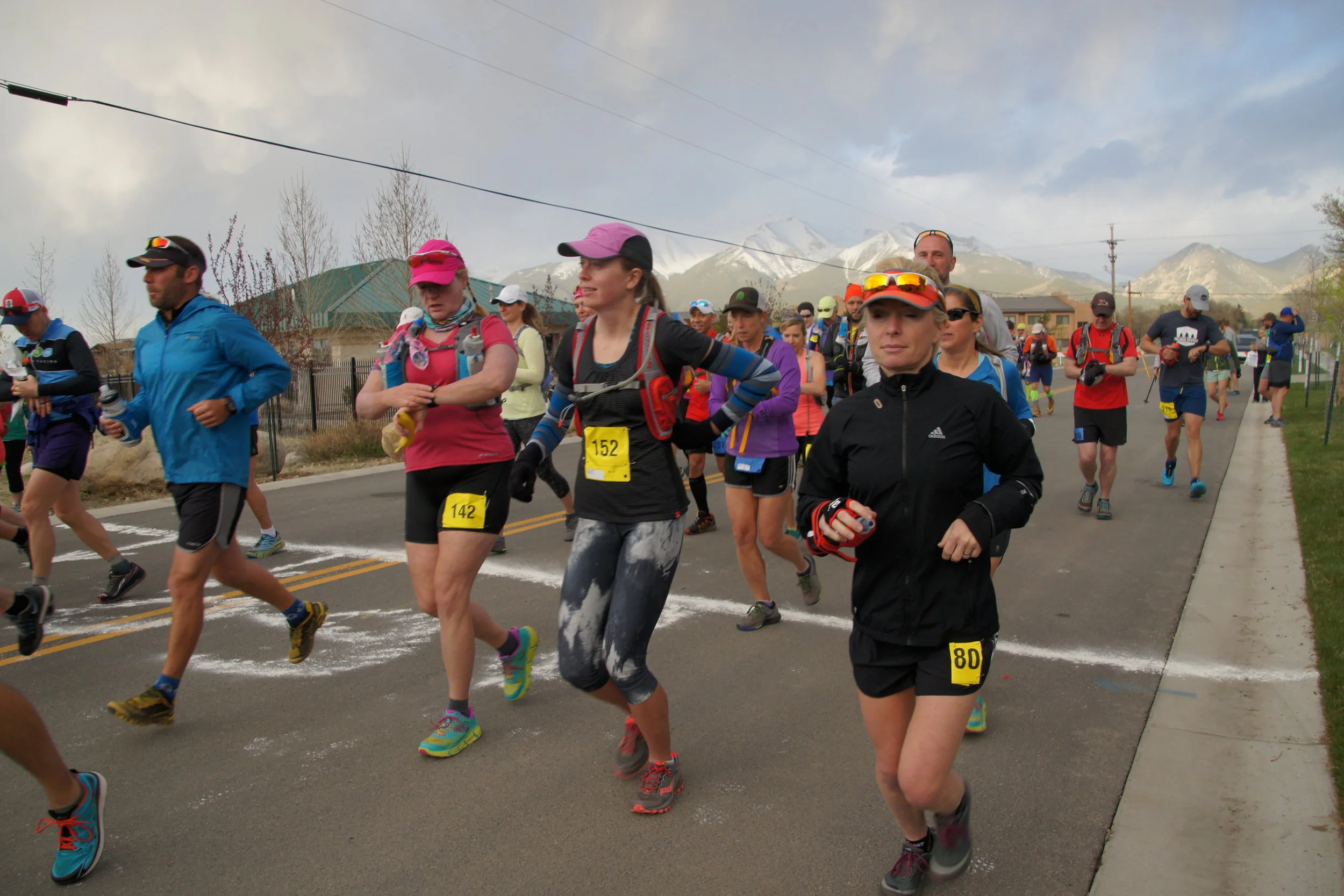 The weather for the CPTR can be and often is quite unpredictable & fickle – ranging from 3-4FT snow dumps (1999 and 2001) to warm and quite sunny race days (many years). This year the weather was a nice, runner-friendly, mix. Temperature at race start was in the upper 30s – with mainly calm winds. While temperatures in town rose to upper 50s by mid-afternoon, skies remained mainly overcast. Precipitation was quite light – very light sprinkles and ‘misting’ to keep folks cool without impacting course surface.