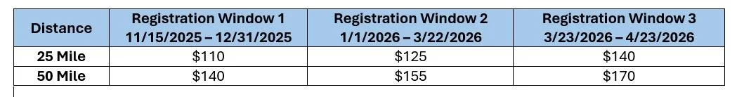 Note: Additional third-party fees may apply at time of registration on UltraSignup. All fees subject to change without notice.